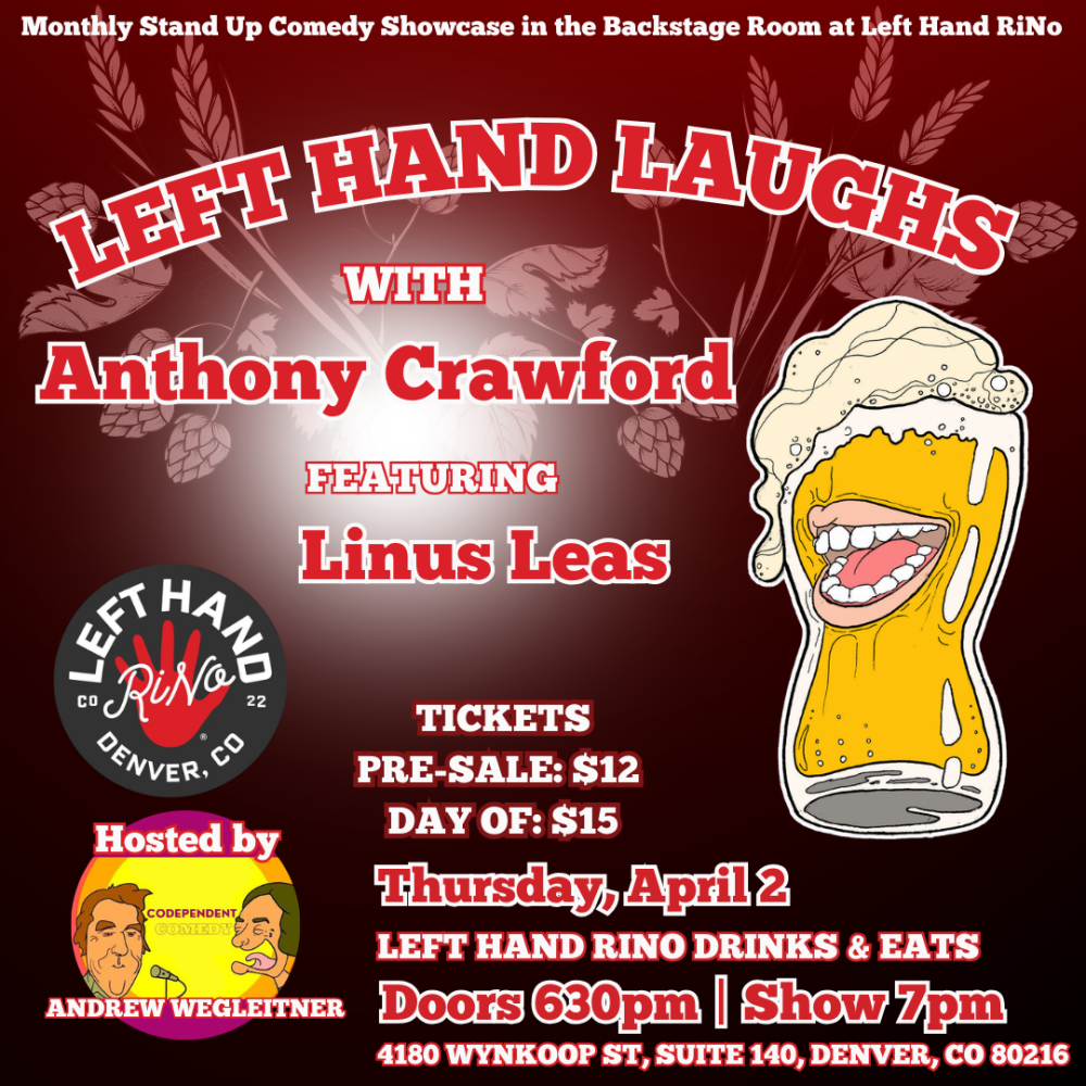 Enjoy an evening of standup comedy, presented by Codependent Comedy, while indulging in award-winning Left Hand craft beer, signature cocktails & dinner served right to your table at Left Hand...