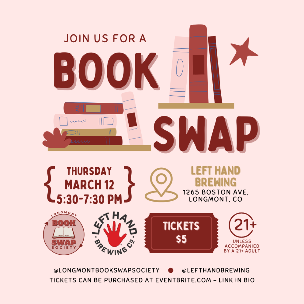 Join Longmont's Book Swap Society for an evening of literary exchange in our Tasting Room—bring...