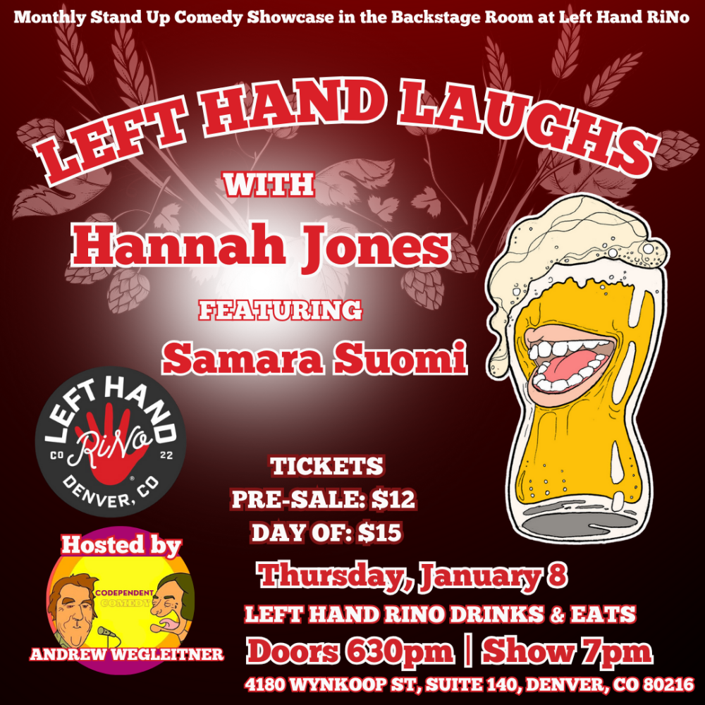 Enjoy an evening of standup comedy, presented by Codependent Comedy, while indulging in award-winning Left Hand craft beer, signature cocktails & dinner served right to your table at Left Hand...